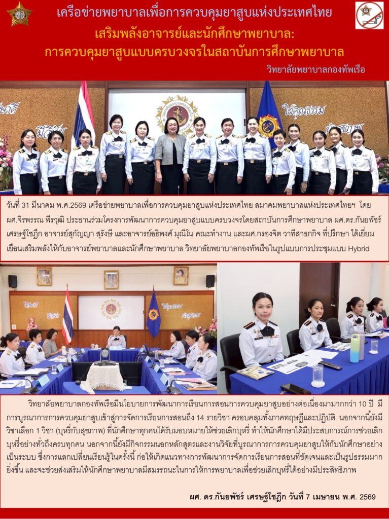 เสริมพลังอาจารย์และนักศึกษาพยาบาล: การควบคุมยาสูบแบบครบวงจรในสถาบันการศึกษาพยาบาล วิทยาลัยพยาบาลกองทัพเรือ