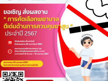 ขอเชิญ ส่งผลงาน “ การคัดเลือกพยาบาลดีเด่น ด้านการควบคุมยาสูบ “ ประจำปี 2567