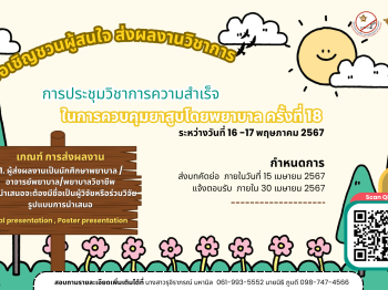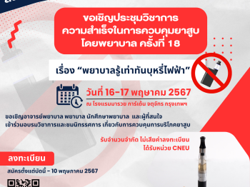ขอเชิญประชุมวิชาการความสำเร็จในการควบคุมยาสูบโดยพยาบาล ครั้งที่ 18