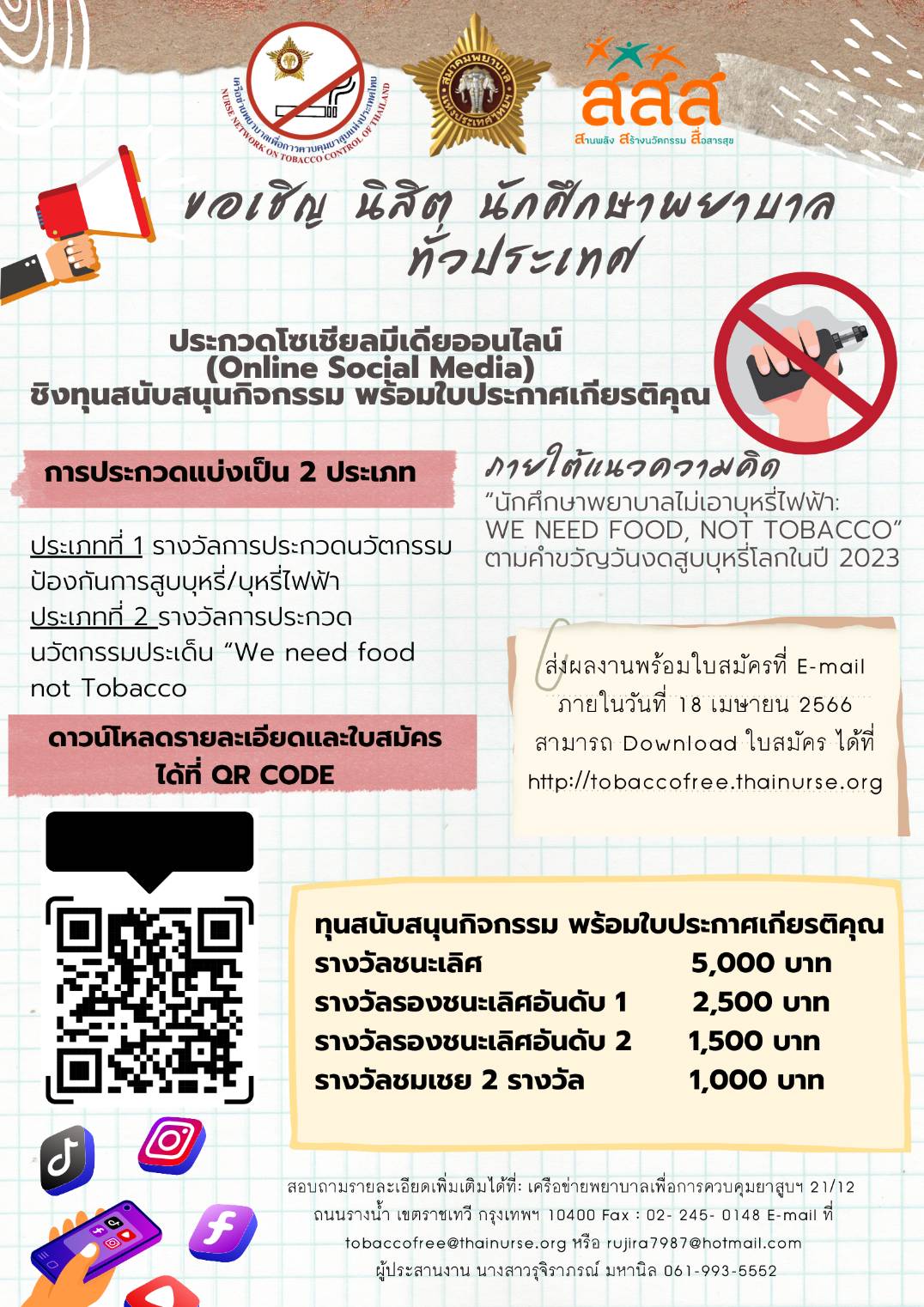 ประกวดโซเชียลมีเดียออนไลน์ (Online Social Media) ภายใต้แนวความคิด “นักศึกษาพยาบาลไม่เอาบุหรี่ไฟฟ้า: We need food, not Tobacco” 06/05/256601/07/2025admin adminข่าวประชาสัมพันธ์