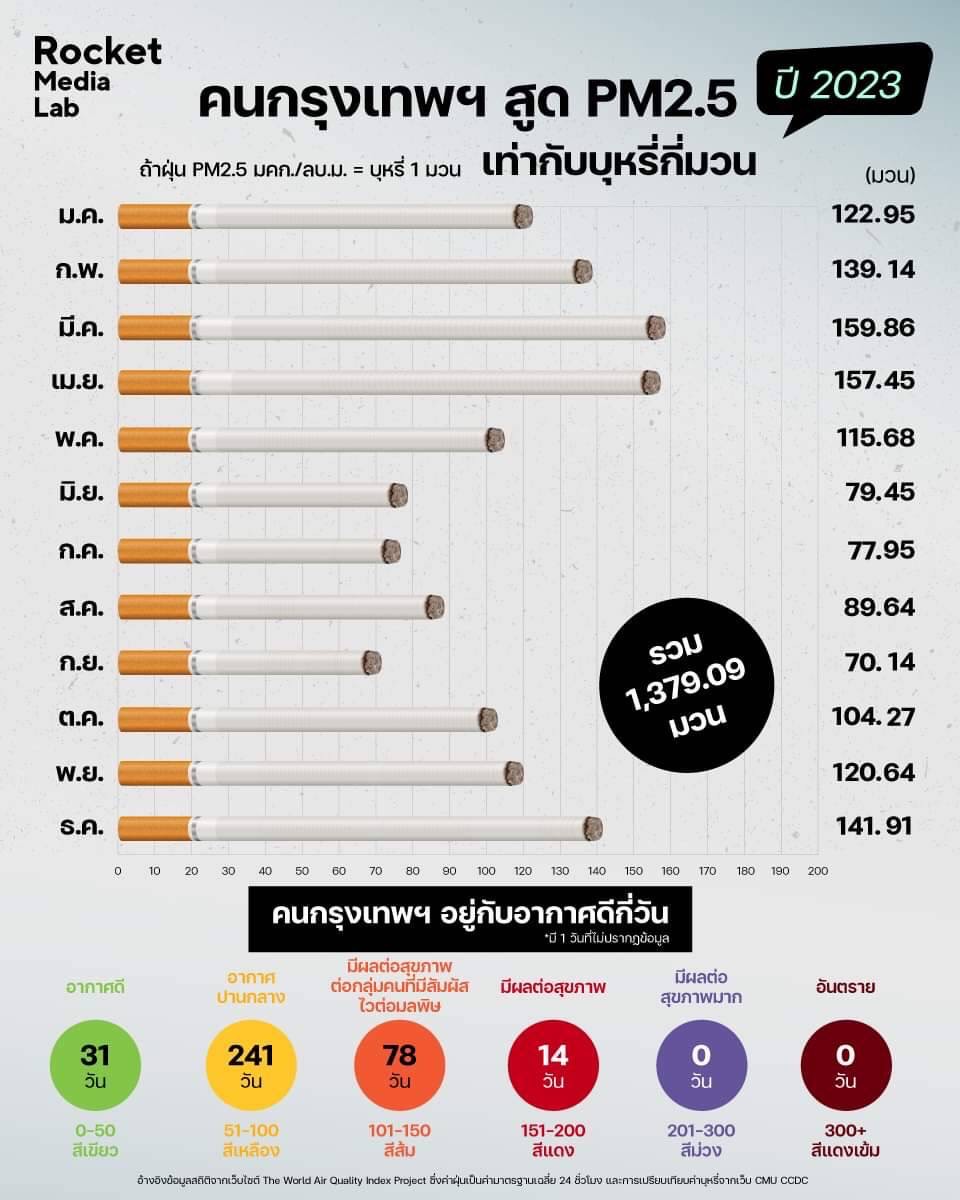 คนกรุงเทพฯ สูด PM2.5 เท่ากับบุหรี่กี่มวน ปี 2023 19/02/256709/09/2025admin adminสาระน่ารู้เครื่อข่ายพยาบาลเพื่อการควบคุมยาสูบแห่งประเทศไทย คนกรุงเทพฯ สูด PM2.5 เท่ากับบุหรี่กี่มวน ปี 2023