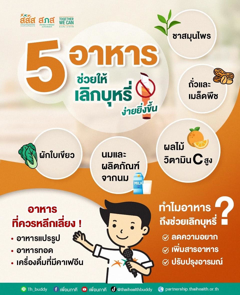 5 อาหารช่วยเลิกบุหรี่ง่ายยิ่งขึ้น 28/08/256709/09/2025admin adminสาระน่ารู้เครื่อข่ายพยาบาลเพื่อการควบคุมยาสูบแห่งประเทศไทย ที่มา : https://www.trc.or.th