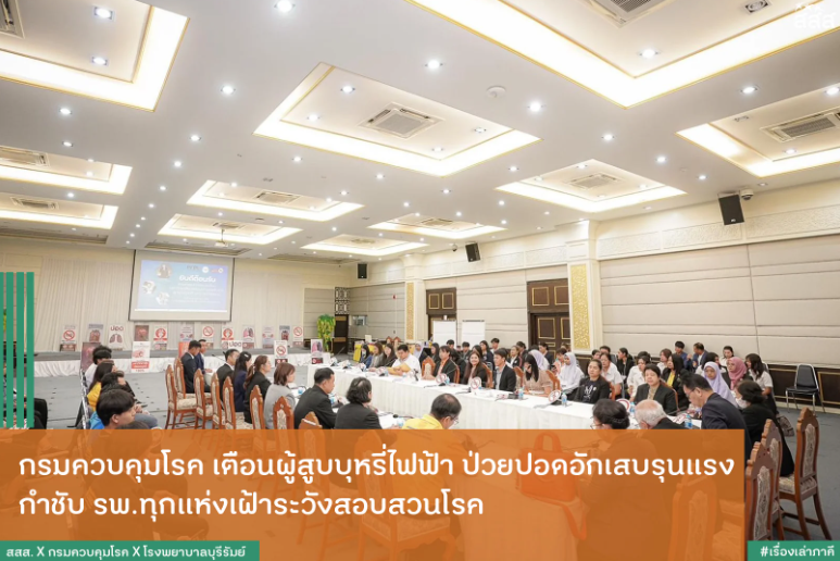 วันนี้ (19 พฤศจิกายน 2567) ที่โรงแรมเบสท์ เวสเทิร์น พลัส แวนด้า แกรนด์ อ.ปากเกร็ด จ.นนทบุรี นายแพทย์ภาณุมาศ ญาณเวทย์สกุล อธิบดีกรมควบคุมโรค มอบหมายให้ นายแพทย์ชยนันท์ สิทธิบุศย์ ผู้อำนวยการกองงานคณะกรรมการควบคุมผลิตภัณฑ์ยาสูบ ร่วมกับ แพทย์หญิงภาวิณี วงค์ประสิทธิ์ นายแพทย์เชี่ยวชาญโรงพยาบาลบุรีรัมย์ ร่วมแถลงข่าวกรณีพบผู้ป่วยปอดอักเสบจากการสูบบุหรี่ไฟฟ้า ที่เข้ารับการรักษาที่โรงพยาบาลบุรีรัมย์